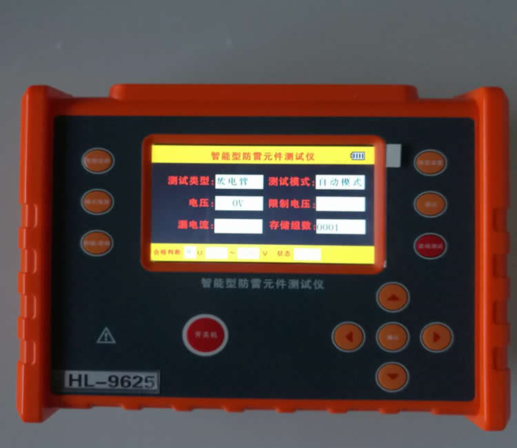 防雷元件测试仪由中大规模集成电路组成。本表输出功率大,起始动作电压测量范围:0-2000V,漏电流测量范围:0.1~199.9uA,绝缘电阻:0~1000MΩ,重复稳定性好,一键测量方便快捷。